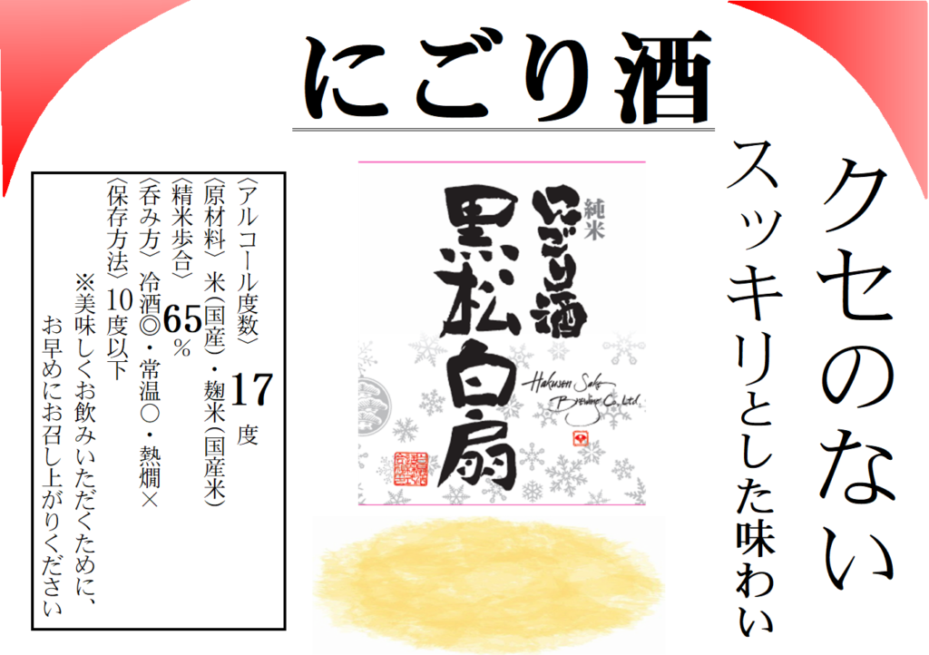 日本酒のしぼりの季節になりましたね。白扇酒造からも今年の新米で仕込んだ「新酒一号」を含め、冬にピッタリのお酒をご用意してお待ちしております。