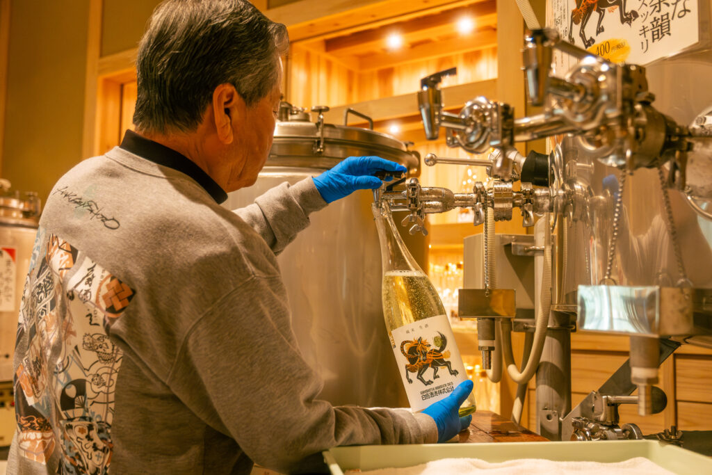 とってもご好評の【量り売り】!ご注文いただいてから、その場でフレッシュな生酒をたっぷりお詰めしています。