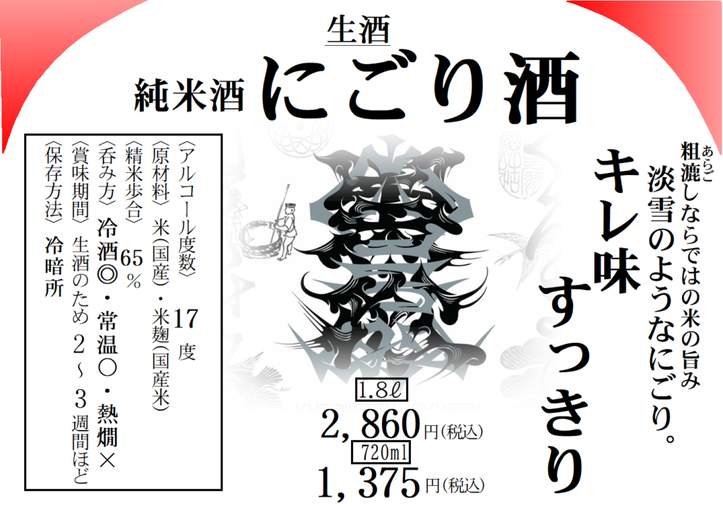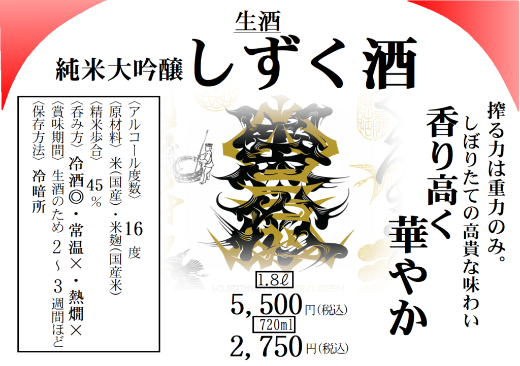 👇「しずく酒」「にごり酒」「あらばしり」は瓶に詰めた状態での販売です👇