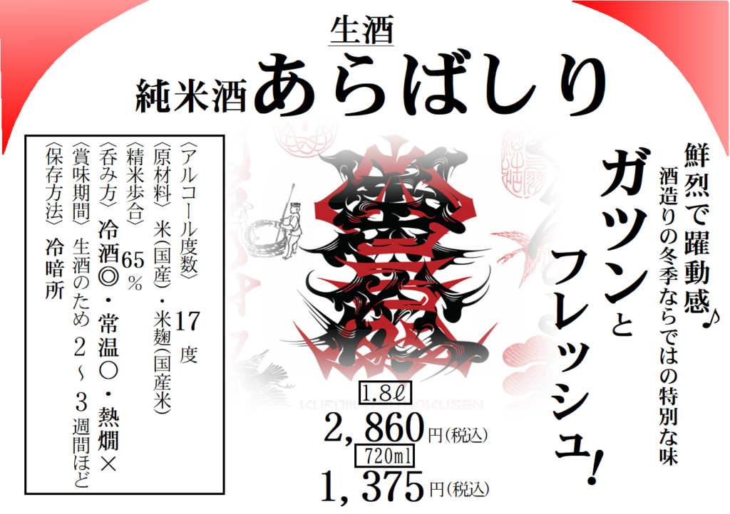 1月から3月までは毎年大人気の「蔵出し原酒」「どろりん」が登場しますよ!