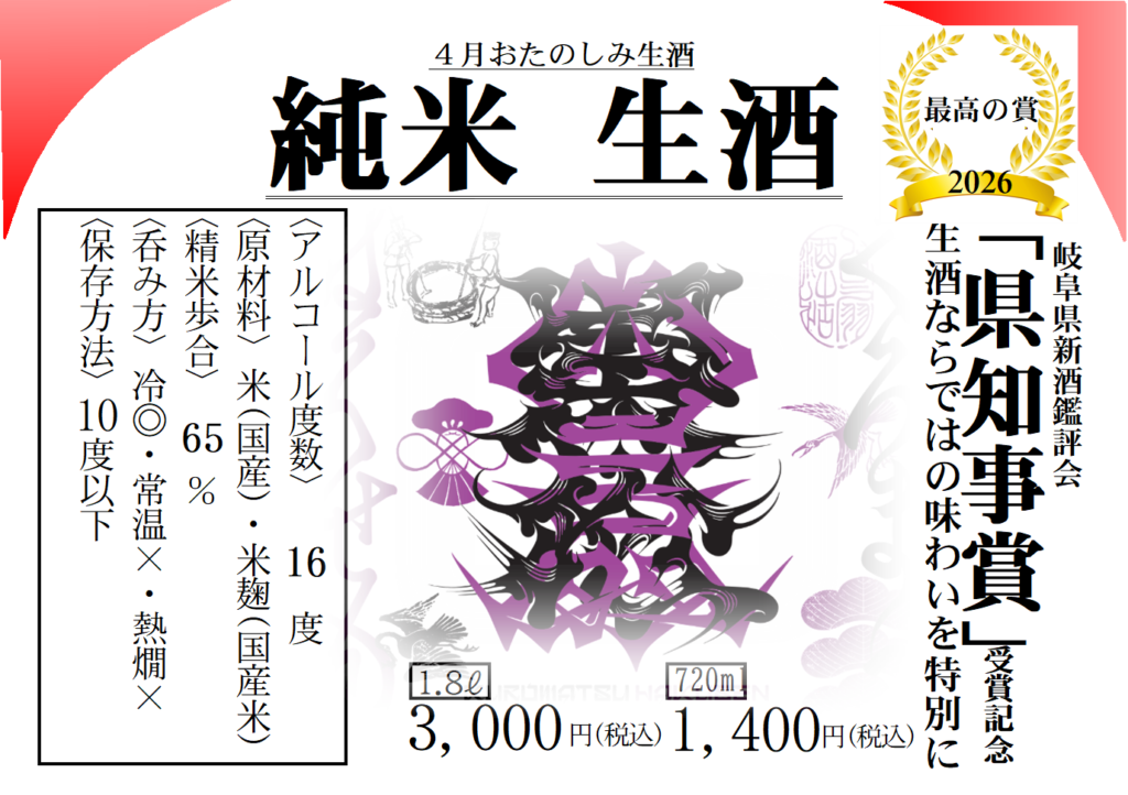 【🏆受賞記念】岐阜県知事賞受賞したお酒を生酒で量り売り中です!4/26㈰の蔵祭りで終売!