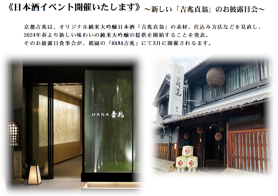 京都吉兆「日本酒イベント」 2024年1月19日2024年3月7日 イベント情報 いつもご愛顧いただきありがとうございます。 新しい春にむけて新しい挑戦が始まっています。 新しい挑戦をぜひ一緒に味わいませんか? お待ちしております。 関連記事: 関連する記事は投稿されていません URL Copied! 白扇酒造のイベント情報やお得な情報はSNSでも発信中です Instagram facebook X(twitter) LINE メルマガ 白扇酒造 季節のおすすめ