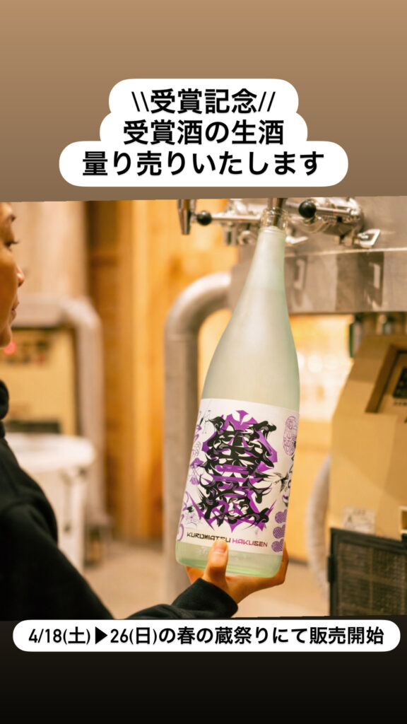 なお、受賞酒【黒松白扇 純米酒 蔵】は