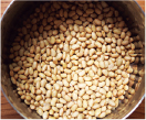 鍋に蒸し大豆と水を入れ沸騰させる。沸騰したら蓋をして、大豆を潰しやすいように溜めておく。